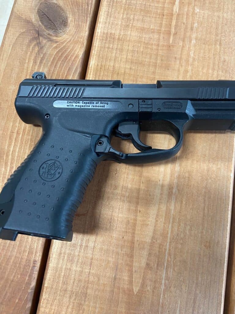 אקדח Smith&Wesson שמור כמו חדש. מגיעה באריזה מקורית עם שתי מחסניות ונרתיק.