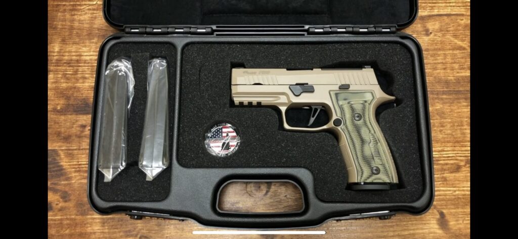 מסדנת Custom Works של סיג, מסדרת אקדחי AXG, מבוסס P320. שלוש מחסניות 17 כדור. הכנה לאופטיקה. הדק ישר, חידוש קשר קצר, נקירה כאקדחי ם תחרותיים. נרכש לפני שנתיים, יד ראשונה, כמעט ולא ירה.