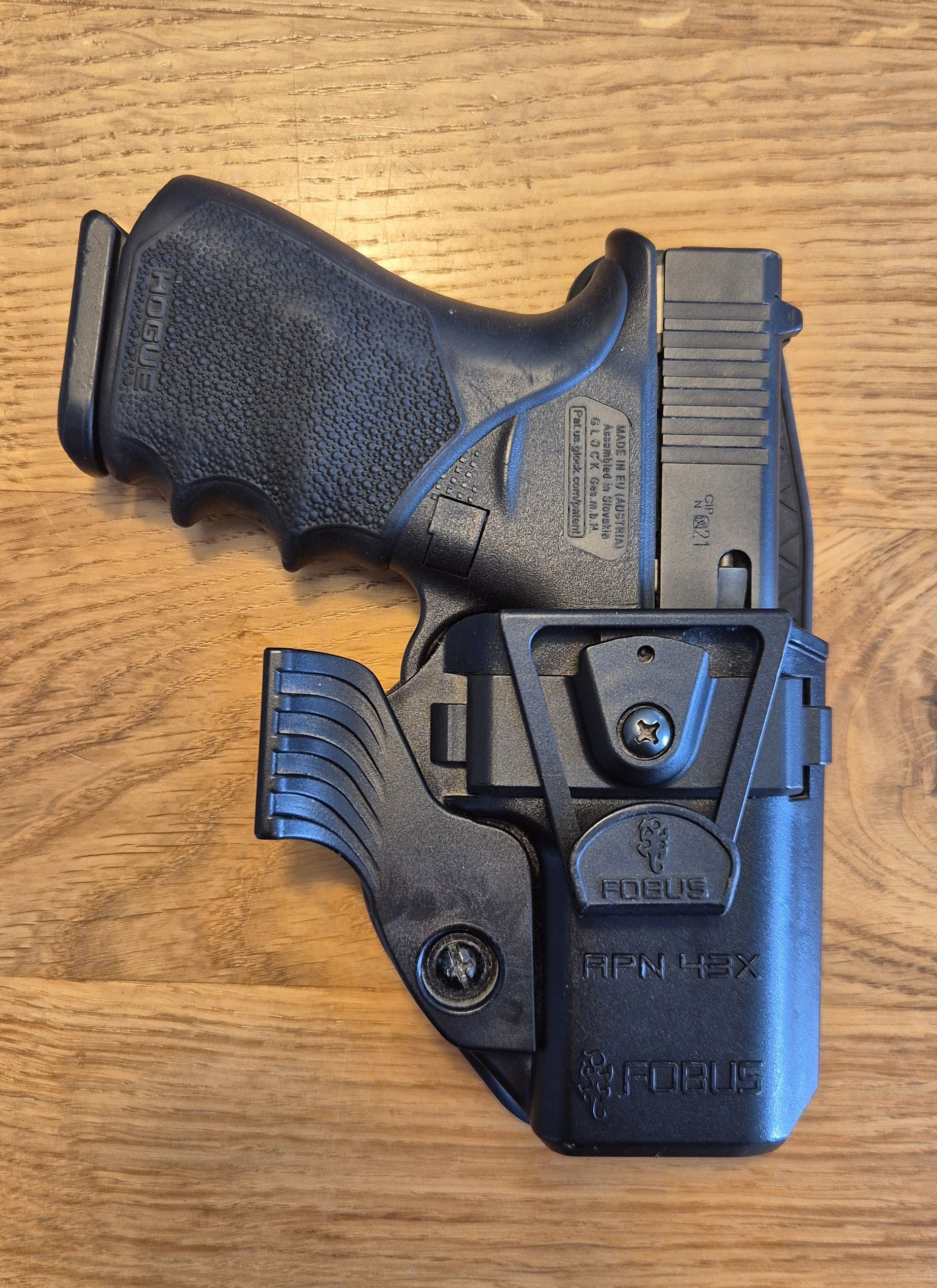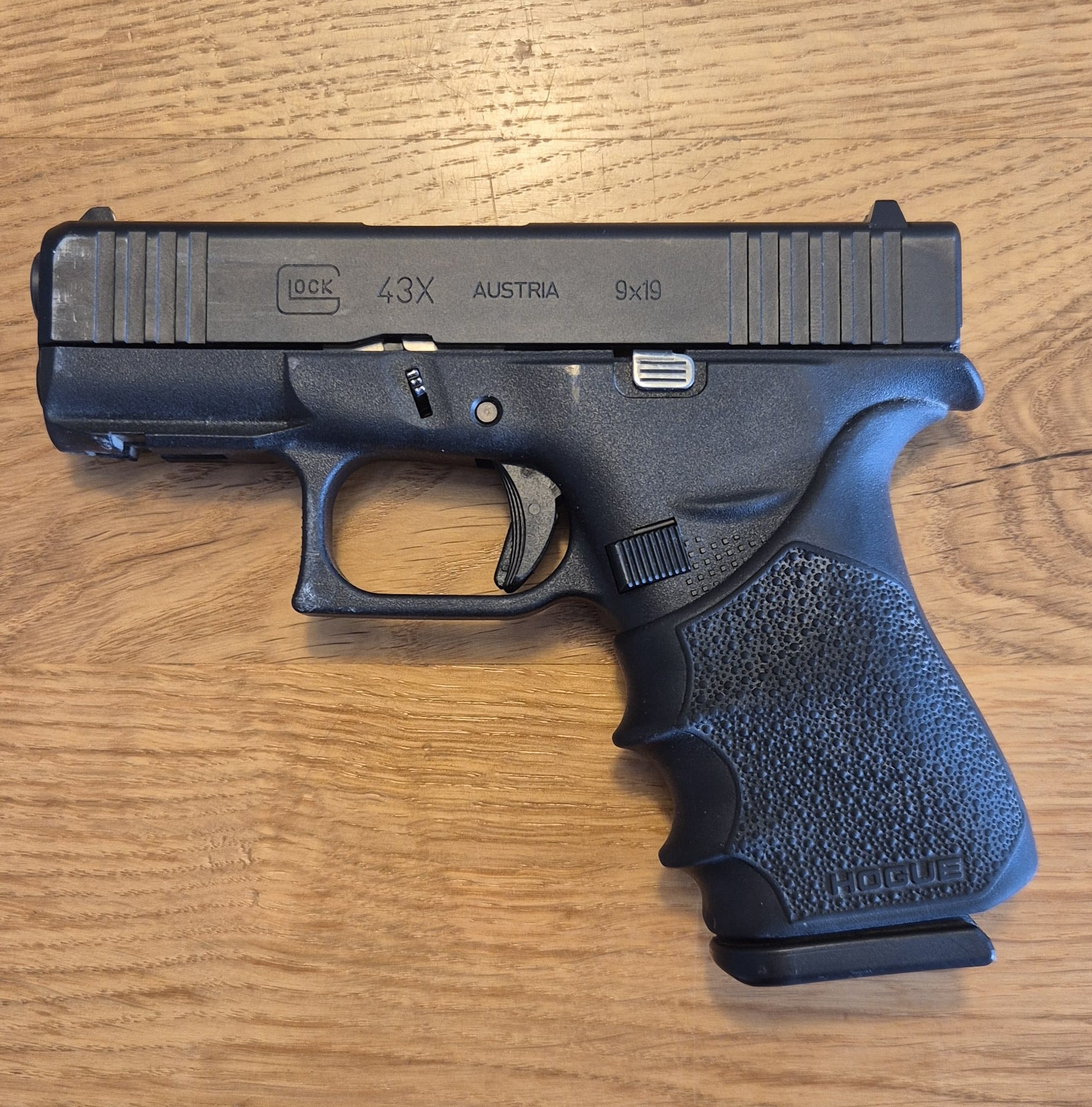 גלוק 43X תוצרת אוסטריה, עם מסילה לפנס או ציין. האקדח נשמר בקנאות ובמצב מעולה. האקדח מגיע עם: גריפ של חברת הוג, 3 מחסניות מקוריות של 10 כדורים, דוחס כדורים עבור המחסניות, קייס מקורי של האקדח, נרתיק של חברת Fobus.
