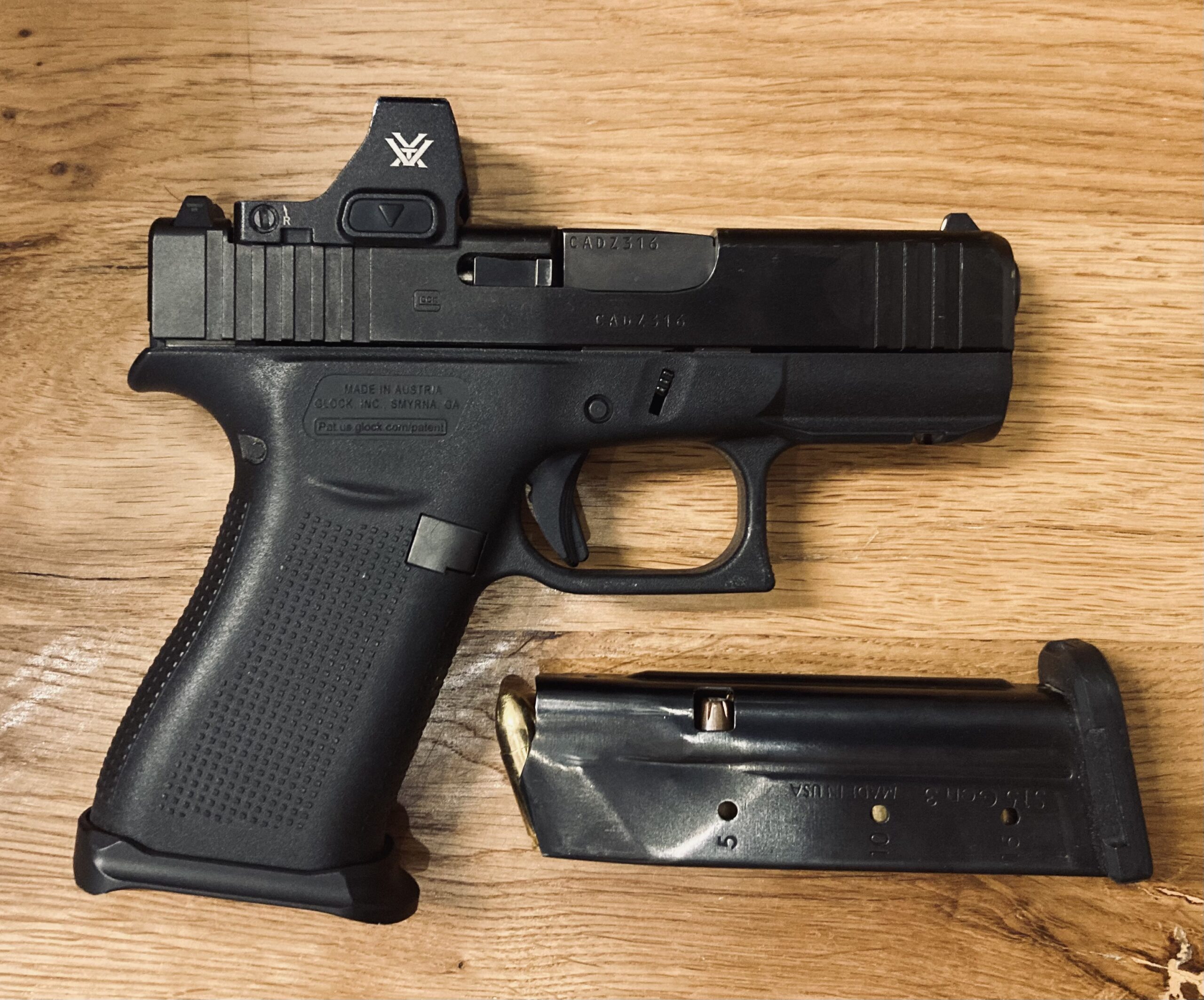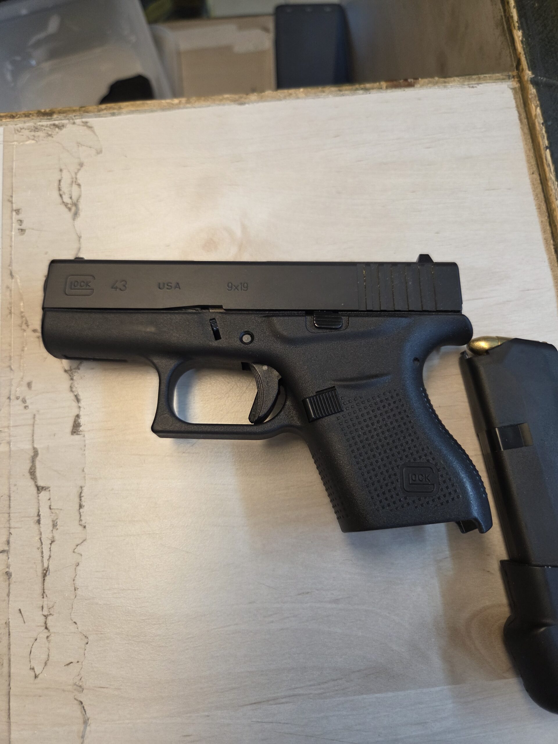 גלוק 43 עם שתי מחסניות 10 ו-8 כדורים אקדח קטן קומפקטי ונוח להסלקה ללא תקלות...