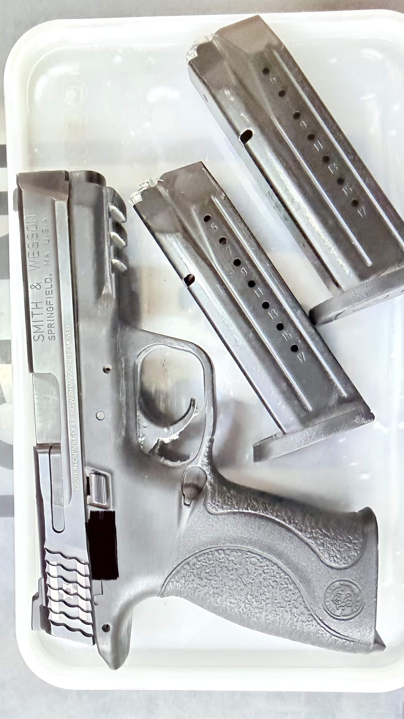 אקדח במצב מצויין מגיע עם ארבע מחסניות