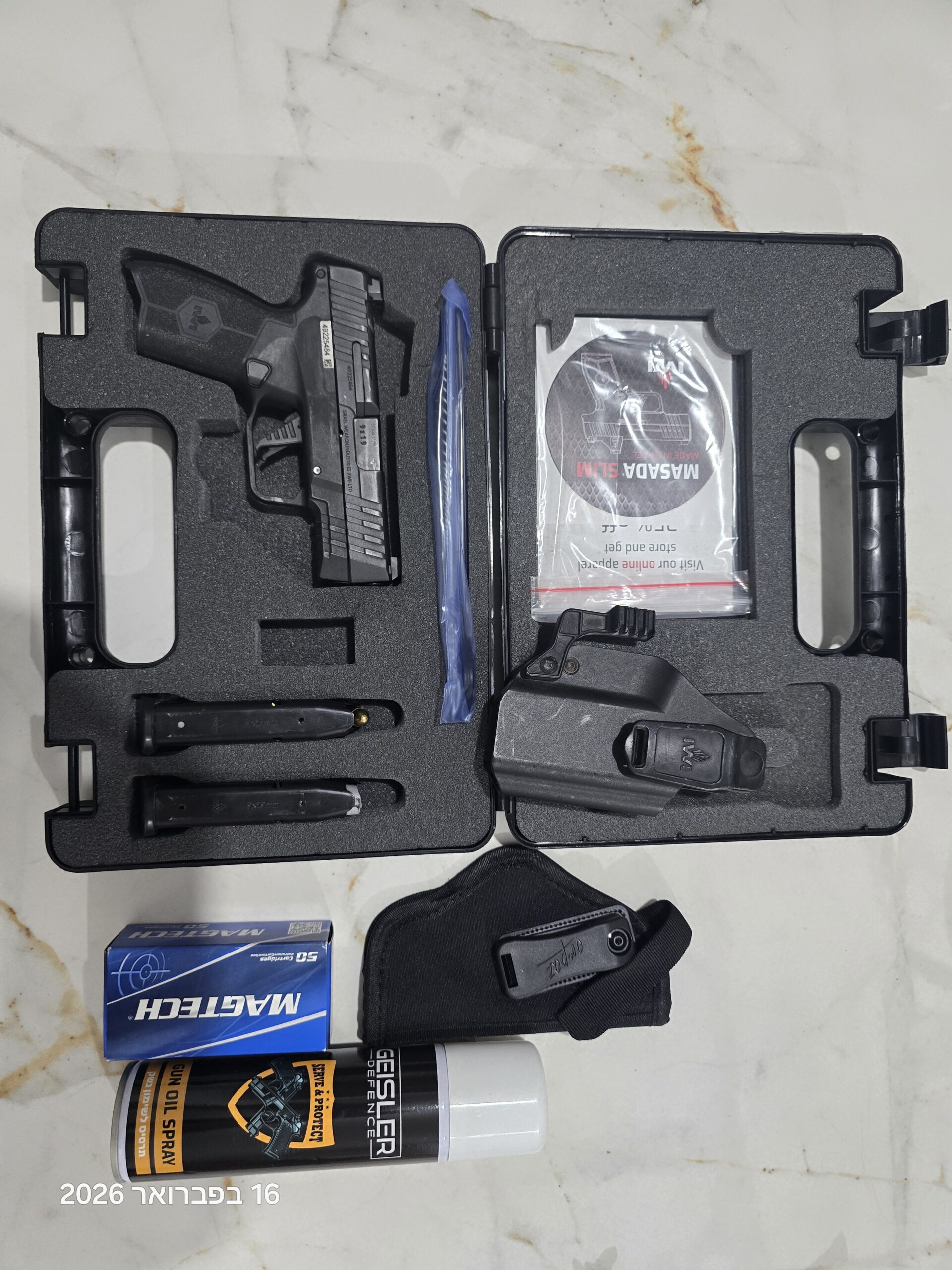 אקדח מצדה מצב חדש ירה רק ברענון פעם אחת עם 2 מחסניות וכל הערכה