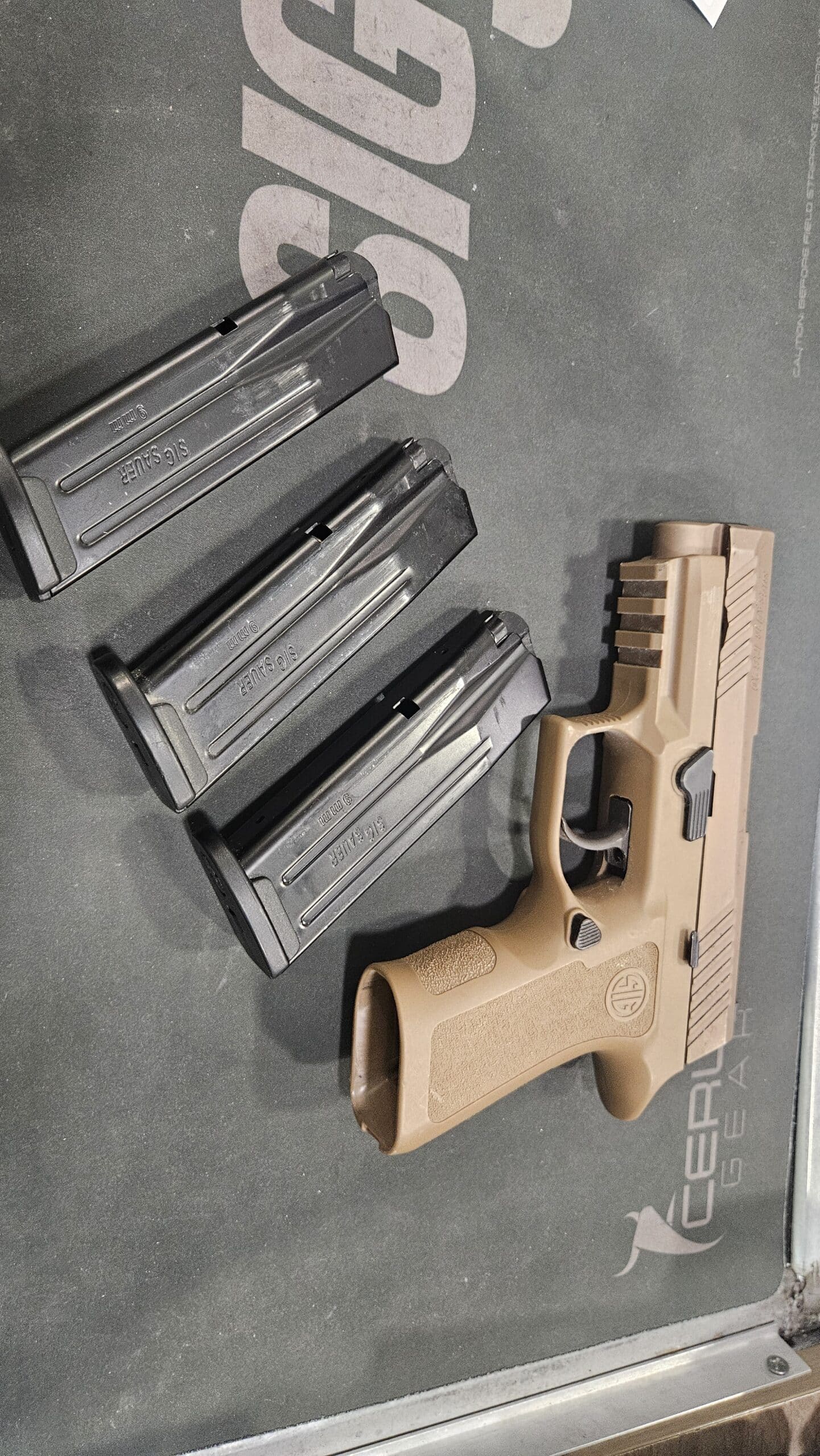 מסדנת Custom Works של סיג, מסדרת אקדחי AXG, מבוסס P320. שלוש מחסניות 17 כדור. הכנה...