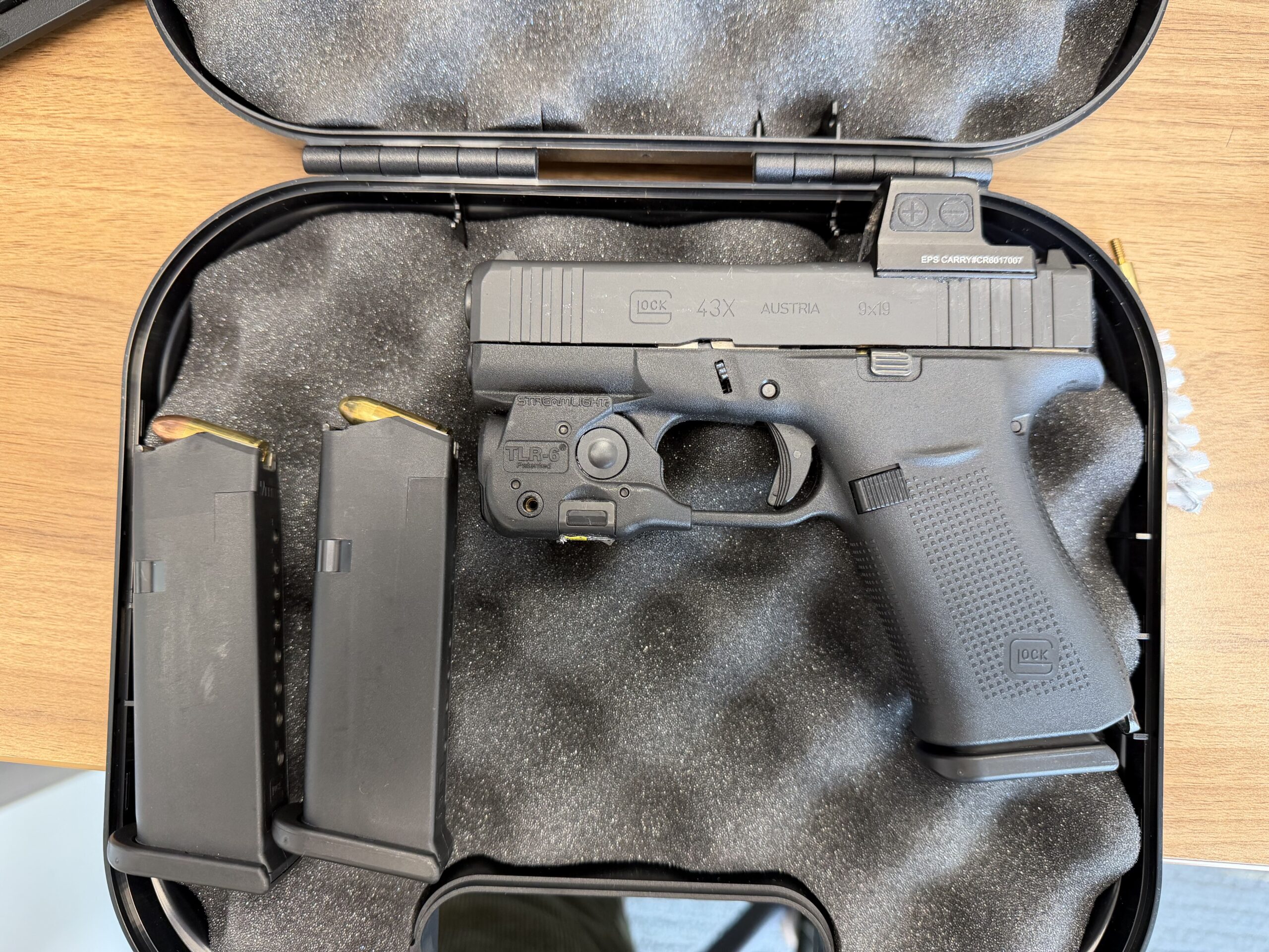 גלוק 43x במצב חדש, ירה 150 כדור, מגיע עם כוונות ברזל חדשות זוהרות בחושך מותאמות...