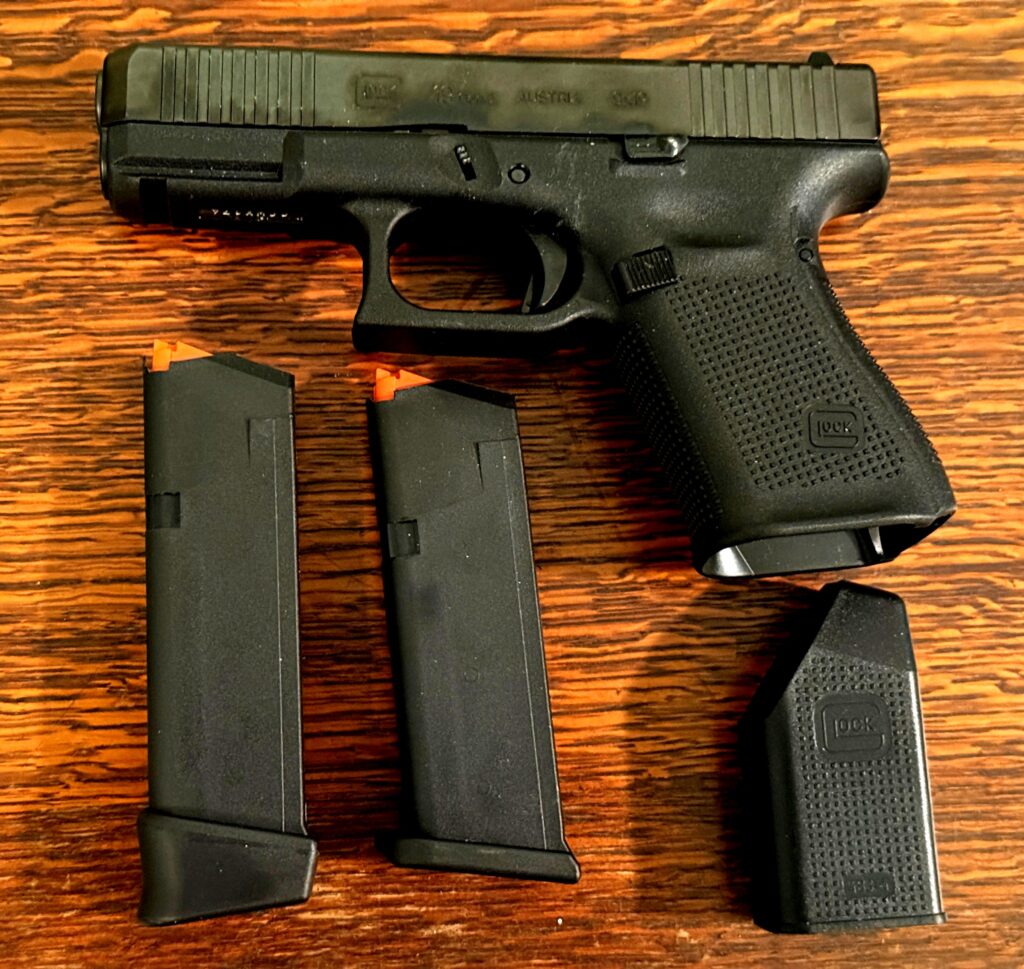 אקדח GLOCK 19 GEN 5; נרכש באפריל 2024; לא נורתה בו אפילו יריה אחת; במצב חדש + שתי מחסניות + 100 כדורים