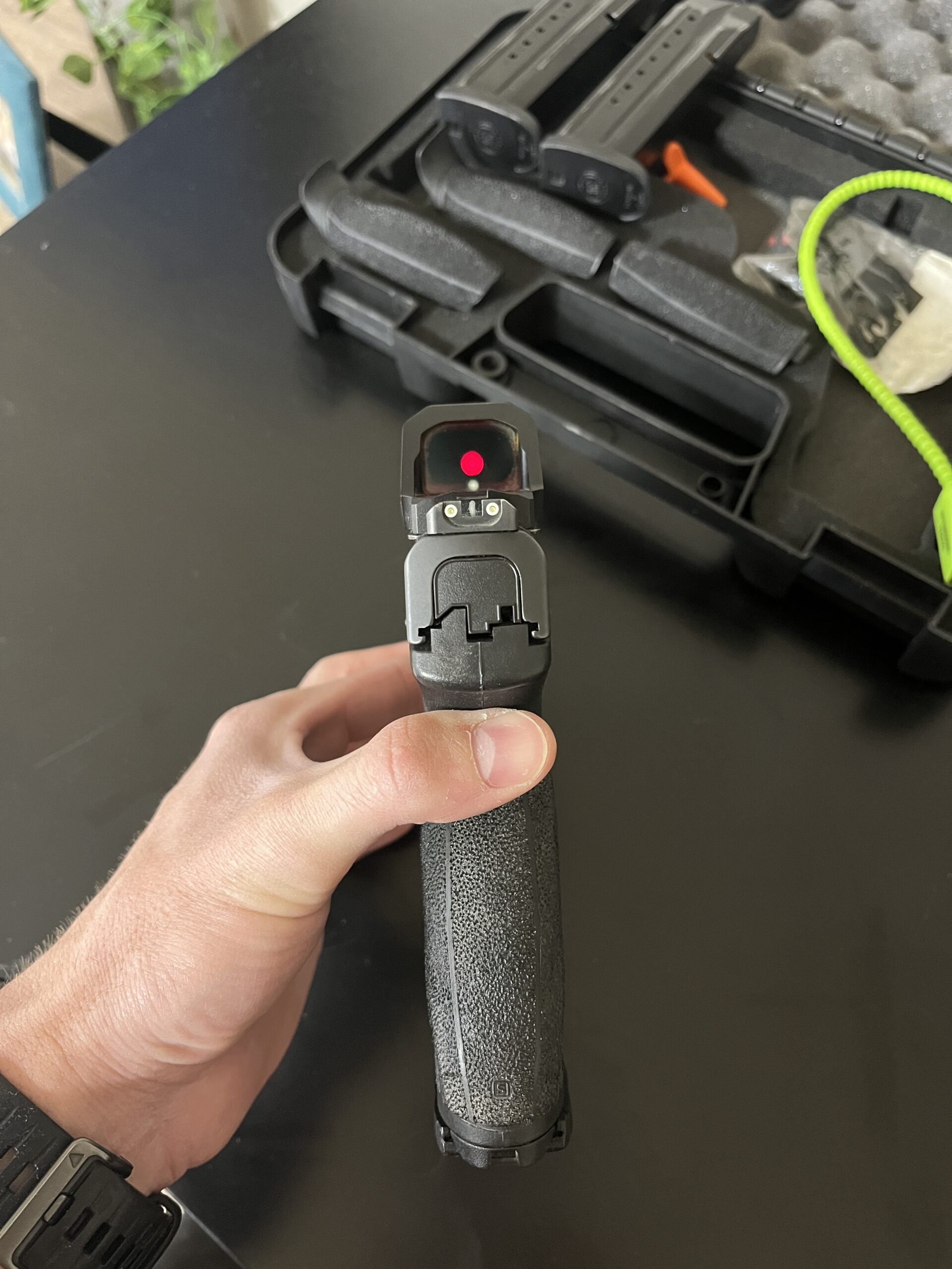3 מחסניות 17 כדור, ידיות אחיזה נוספות, פלטות לכוונות ומנעול.